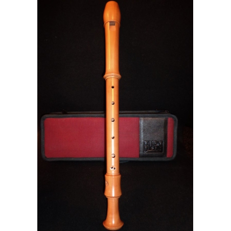 Deze Aura BA5 Altblokfluit wordt geleverd in een stevige katoenen hoes (wijnrood) met rits, grepentabel, houten wisser met zeemleren doekje en tappenvet.