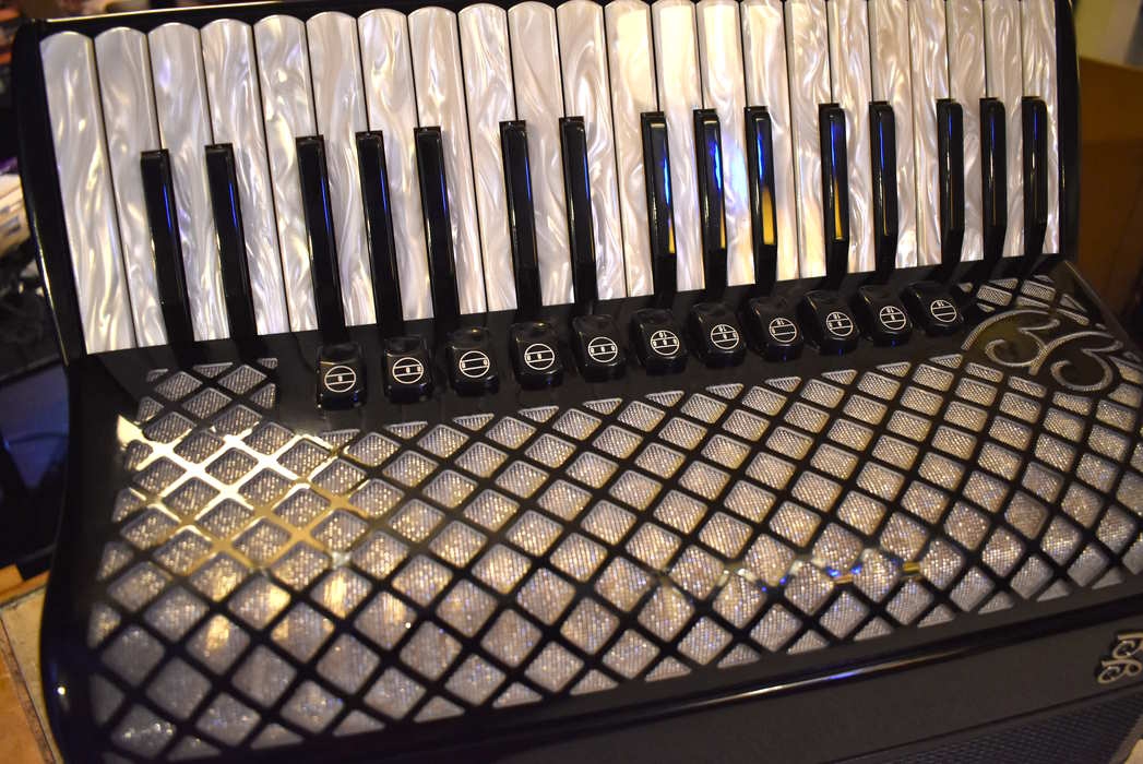 Recente BB accordeon 96 bassen ( 3 rijen grondbas ) 4 korig met rijke 3 korige mussette klank.