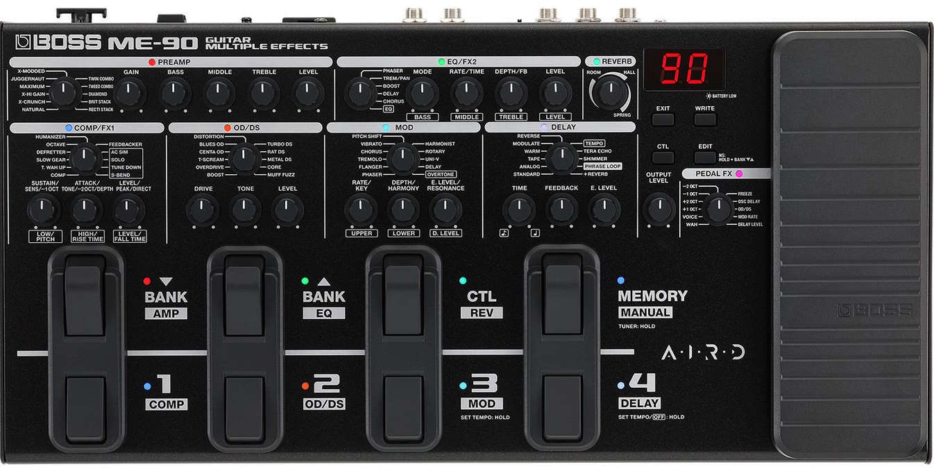 De ME-90 is het meest geavanceerde ME-model tot nu toe en biedt een uitzonderlijke audiokwaliteit met 24-bit AD/DA en 32-bit floating point processing, AIRD-amp models van topkwaliteit, IR-loading, een effectenloop en nog veel meer