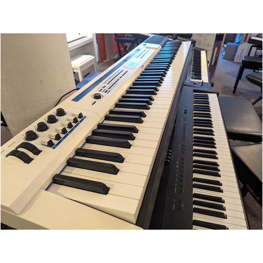Deze 88 toets witte Casio beschikt over een 88 toets gewogen piano klavier met een scaled hammer action-mechanisme, maar verbergt een ongelooflijk geavanceerde programmeerbare Hex Layer-synthesizer naast alle belangrijke funkties om tevens te dienen als master klavier .