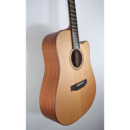 Dit D-MC model heeft een Canadees ceder top en gelaagd mahonie voor de zij- en achterkanten.