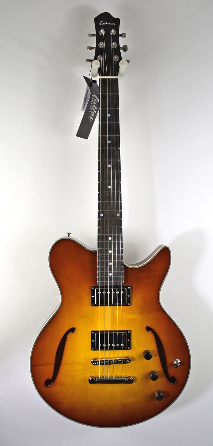 Een geheel nieuw ontwerp door luthier Otto D’Ambrosio voor Eastman. D’Ambrosio leidt de Californische design- en customshop van Eastman en is al bijna 20 jaar aan het bedrijf verbonden.