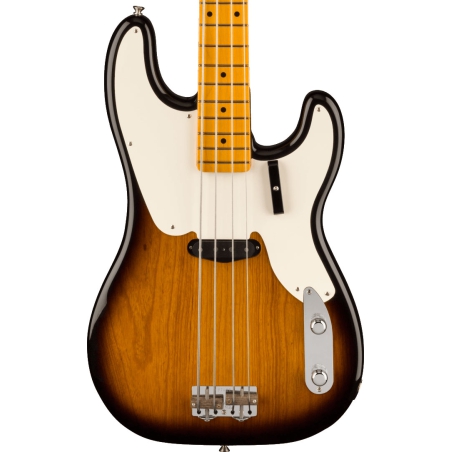 Andere belangrijke kenmerken zijn onder meer een substantiële '54 "C"-vormige esdoornhals met een toets met een radius van 7,25" en vintage hoge frets. De Pure Vintage 2-zadelbrug met fiberzadels, omgekeerde open-gear stemmechanieken, vingersteun en '54 Single- Coil Precision Bass®-pickup levert klassieke Fender toon en stijl.