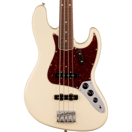 Karakteristiek voor de productie in 1966, deze J-Bass® wordt aangeboden met witte halsbinding, parelmoer stippen, twee volumeregelaars met toonregelaars, bijpassende gekleurde kop en 4-laags tortoiseshell slagplaat. De 4-zadelbrug met schroefdraadzadels, vintage-stijl "lollipop"-tuners en Pure Vintage '66 Jazz Bass-pickups zorgen voor klassieke sound en stijl.