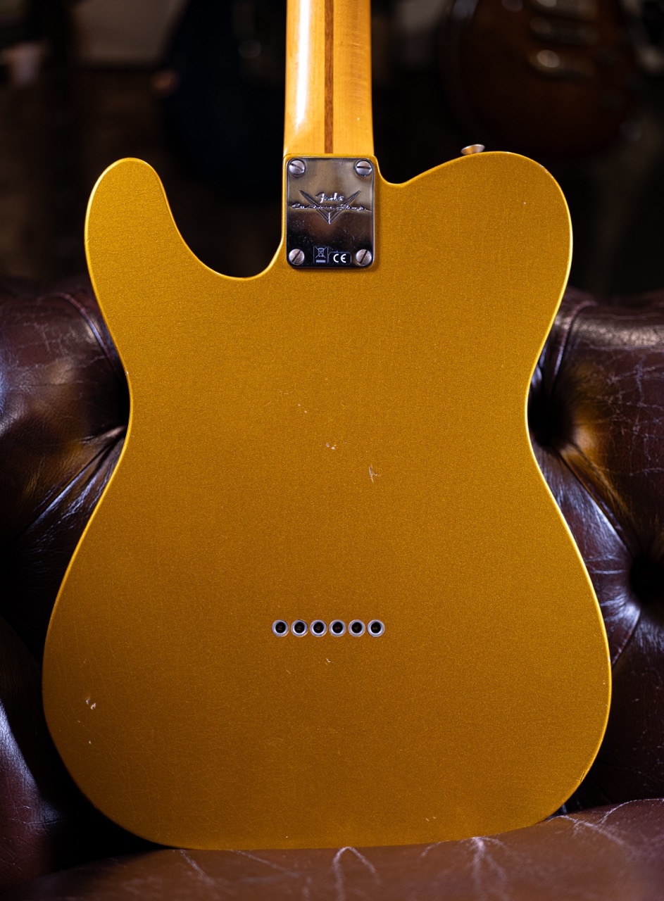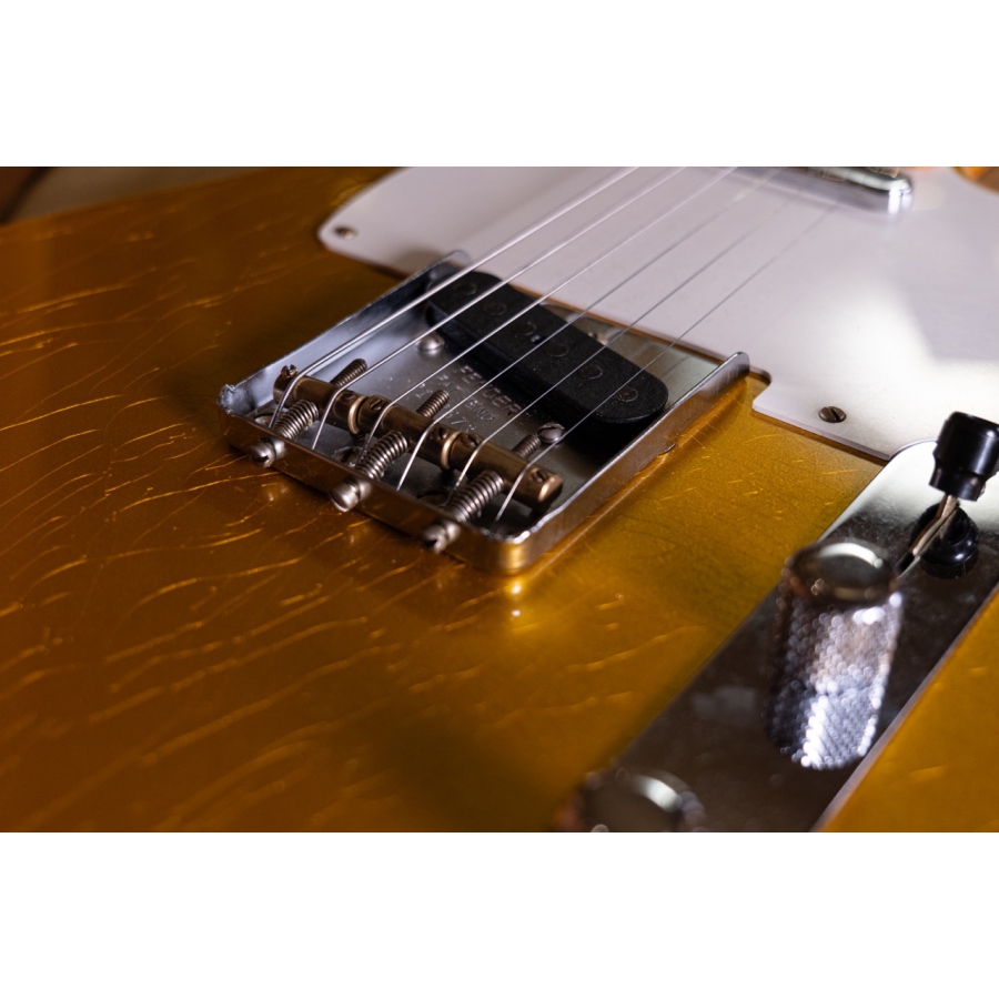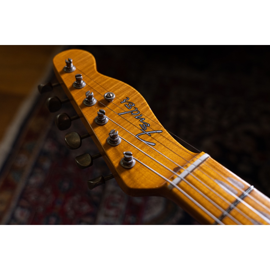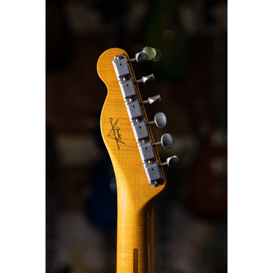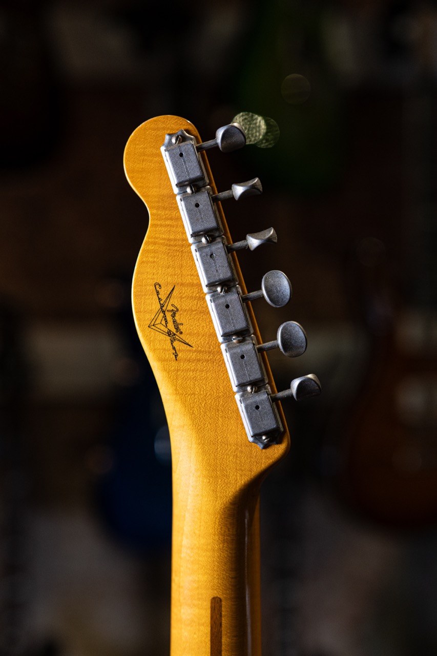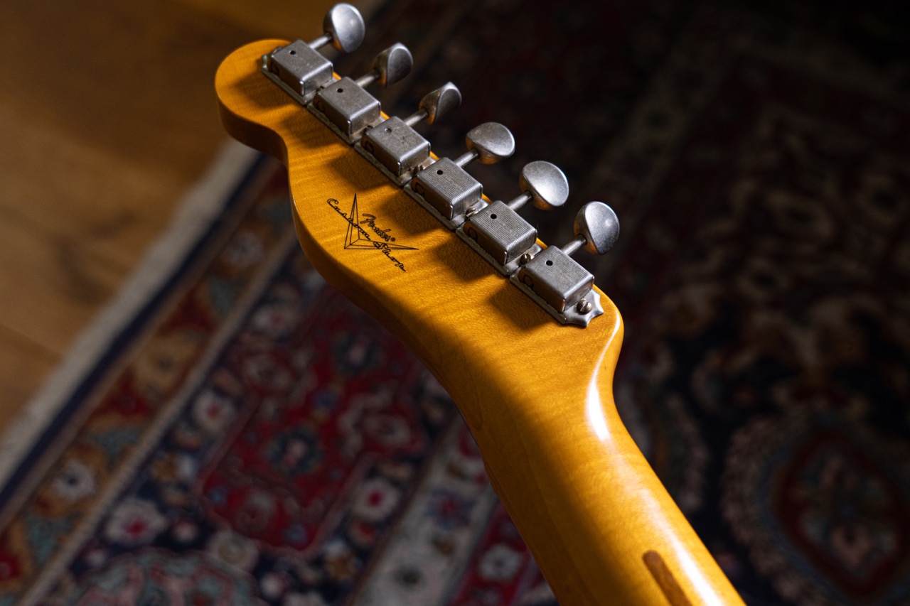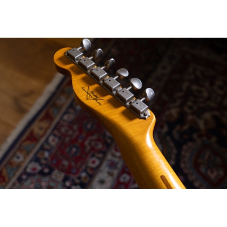Deze prachtige Custom shop Journeyman Relic 51 Nocaster voelt en oogt als een geliefde vintage Telecaster die zijn leven lang bespeeld is, maar niet mishandeld. Een Journeyman relic betekend; subtiele verouderdingen, niet zwaar beschadigd, maar wel duidelijke sporen van gebruik alsof de gitaar 20–30 jaar netjes bespeeld is.