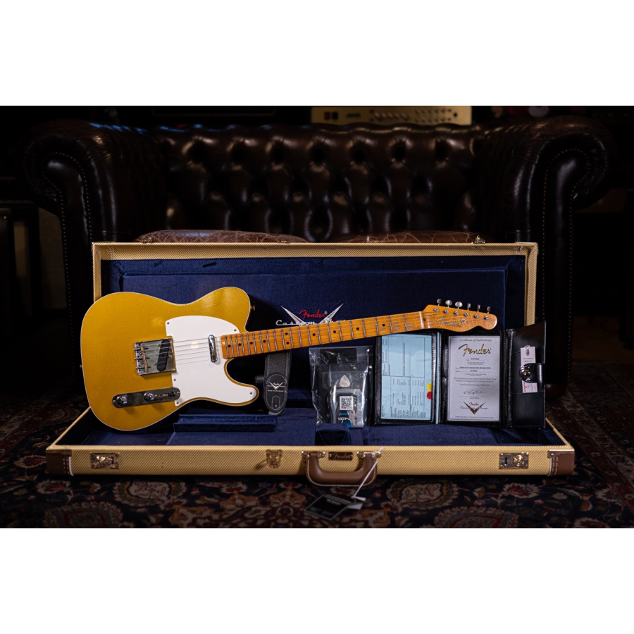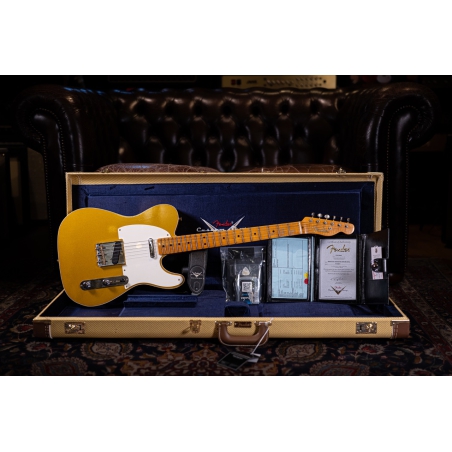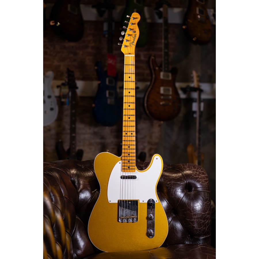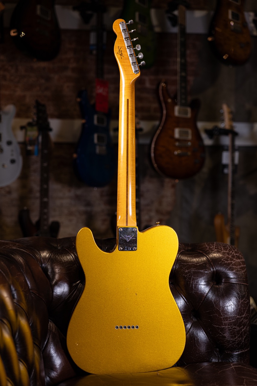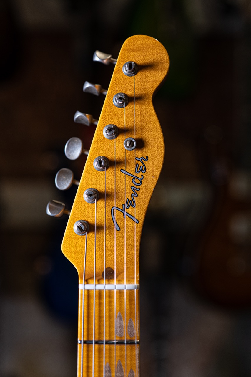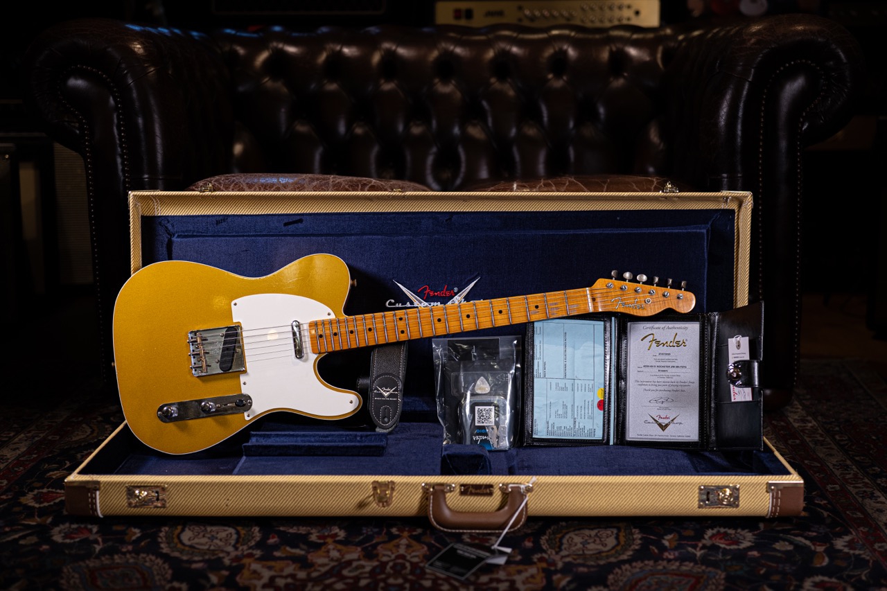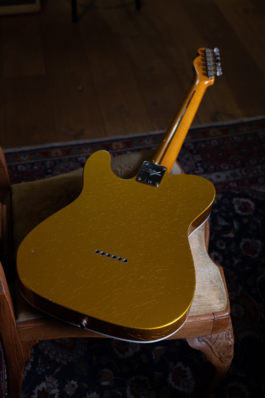 Deze prachtige Custom shop Journeyman Relic 51 Nocaster voelt en oogt als een geliefde vintage Telecaster die zijn leven lang bespeeld is, maar niet mishandeld. Een Journeyman relic betekend; subtiele verouderdingen, niet zwaar beschadigd, maar wel duidelijke sporen van gebruik alsof de gitaar 20–30 jaar netjes bespeeld is.