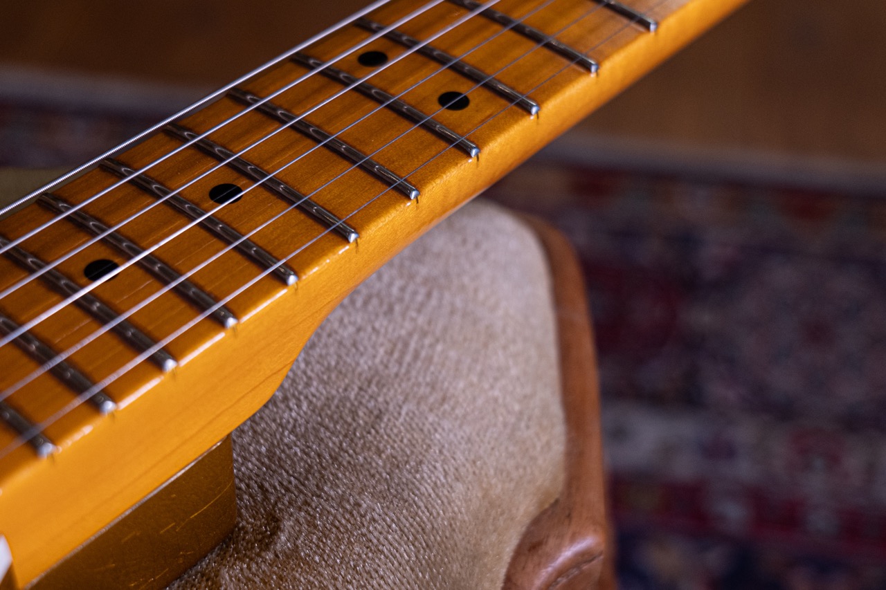 Het heeft een Chunky U-hals, vintage radius, voelbaar en responsief. Met de Klassieke Tele twang, warm, vet, veelzijdig in klank en toon!