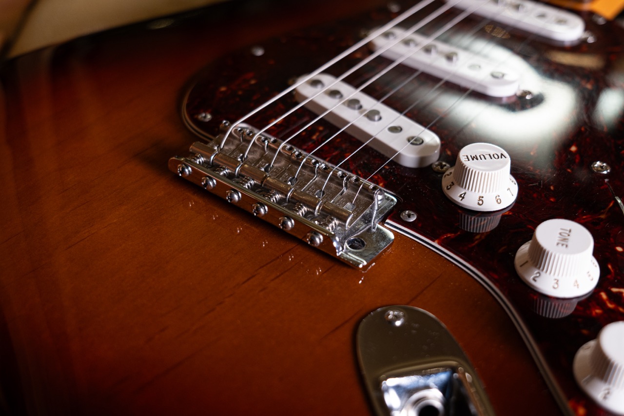 Tremolo & Hardware: Amerikaanse vintage tremolo, 5 veren, geen achterplaat