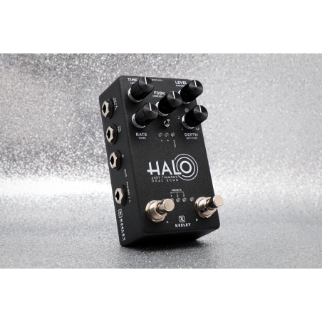 Noten uit de HALO dansen ritmisch, waardoor er bijna een galmverspreiding ontstaat. Die noten worden bij elkaar gehouden met tape-achtige effecten zoals modulatie, verzadiging en compressie. De resultaten zijn verbluffend. Het pedaal wordt geleverd met zijn kenmerkende delay toon en je kunt je eigen geluiden programmeren en opslaan als presets.