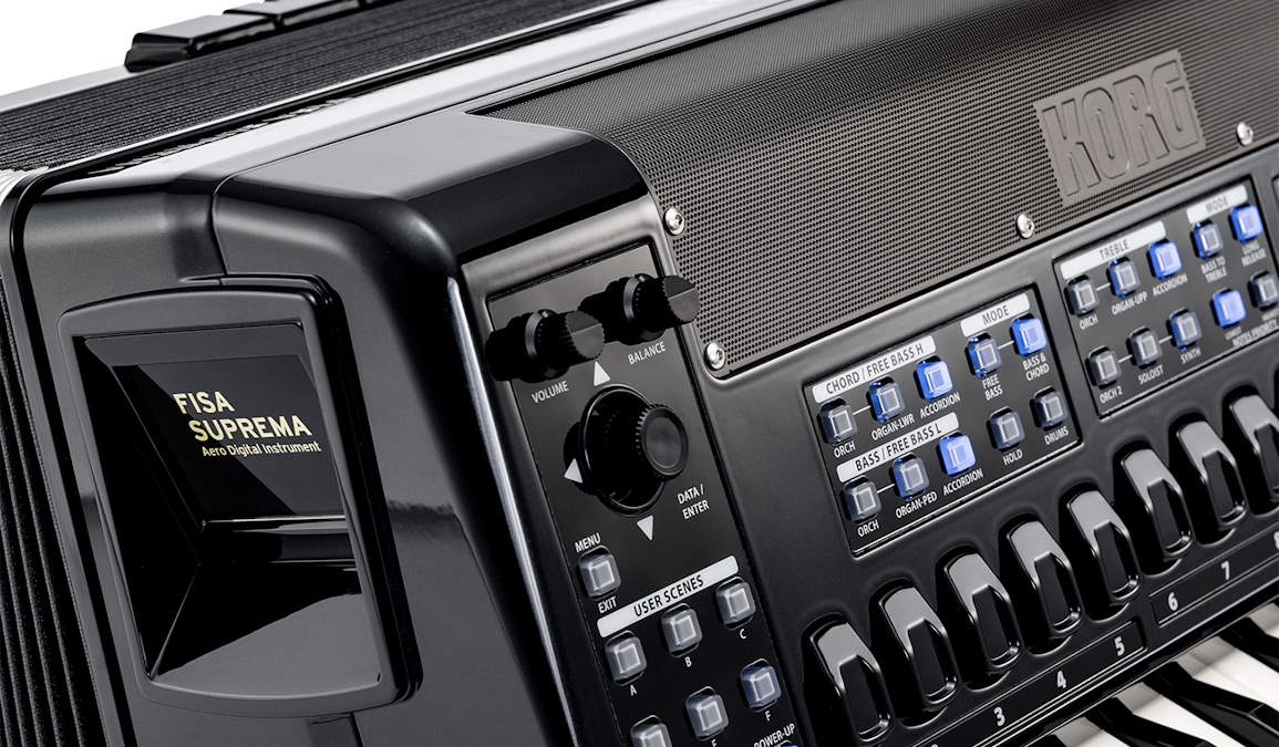 De Korg FISA SUPREMA is een revolutionaire, digitale accordeon die op meesterlijke wijze traditioneel vakmanschap combineert met geavanceerde technologie.