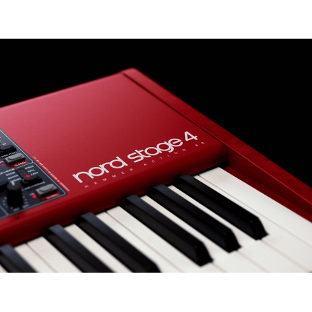 Nord Stage 4 88 met een volledig gewogen Triple Sensor keybed (A-C) met aftertouch en Physical Drawbars met LED-indicatoren.