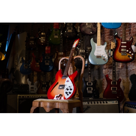 De Rickenbacker 330 FG is een van de meest herkenbare en geliefde elektrische gitaren ter wereld. Met zijn elegante semi-hollow body en de kenmerkende Fireglo afwerking straalt deze gitaar pure klasse uit. Al sinds de jaren ’60 wordt de 330 gebruikt door talloze artiesten in de rock-, pop- en indie-scene, waardoor hij een vaste plek heeft veroverd in de muziekgeschiedenis.