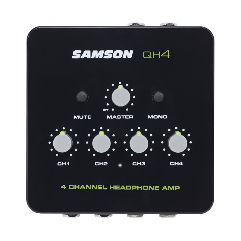 De Samson QH4 is een 4-kanaals hoofdtelefoonversterker met elk een eigen volumeregeling.