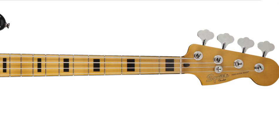 De verleidelijke geheel zwarte look van de Classic Vibe Jazz Bass "70s strekt zich uit tot de slagplaat, de binding en blok inleg op de maple toets. De door Fender ontworpen Alnico split-single-coil pickup levert het klassieke jazz bass geluid, en de Hi-Mass brug met messing "barrel" zadels houdt intonatie oerdegelijk.