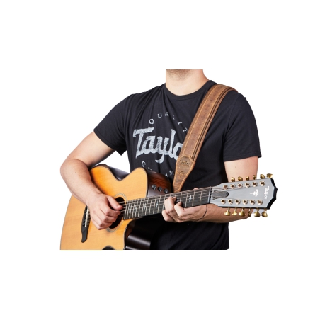 Het rustieke, meerlagen, donkerbruine karakter van de Taylor Wings Distressed Leather gitaarband maakt het tot een typische 'distressed'lederen band. Het is een ideale metgezel voor Taylor gitaren of elke andere gitaar die je wilt laten zien met een aards contrast.